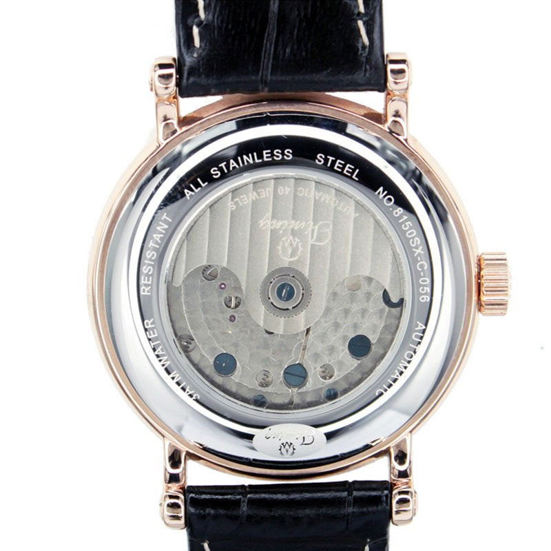 The TIMING Classic Mechanical Watch 8150SX-C is a stunning blend of modern precision and timeless style. Featuring a luxurious rose gold case paired with a striking black dial, this watch is powered by an automatic movement with dual balance wheels, ensuring exceptional timekeeping accuracy. The scratch-resistant mineral glass keeps the dial pristine, while the high-quality 316L stainless steel case provides durability with an elegant rose gold finish. The watch is completed with a genuine leather strap for added comfort and sophistication. With 3ATM water resistance and backed by a two-year warranty, this mechanical watch is perfect for those who appreciate both style and substance. |