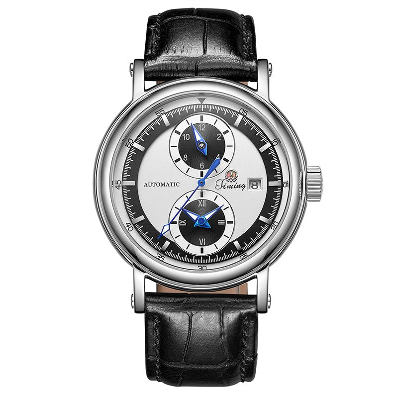 The Timing Men's Watch 8150SX blends sophistication with functionality, featuring a striking dual sub-dial design that adds depth and complexity to the dial. Powered by an automatic mechanical movement, this timepiece ensures precise timekeeping without the need for a battery. The mineral glass dial provides excellent scratch resistance, while the 316L stainless steel case offers both durability and a polished look. A date display adds practical functionality, making this watch ideal for everyday wear. With a water resistance rating of 3ATM, it's perfect for light exposure to water. Backed by a two-year warranty, the Timing Men's Watch 8150SX-SW is a refined and reliable choice for those who appreciate timeless design and precision craftsmanship. |
