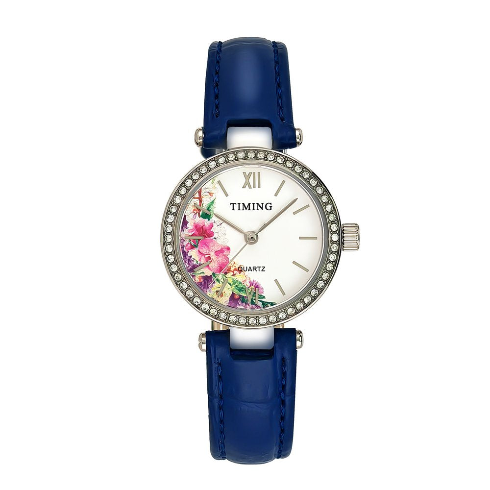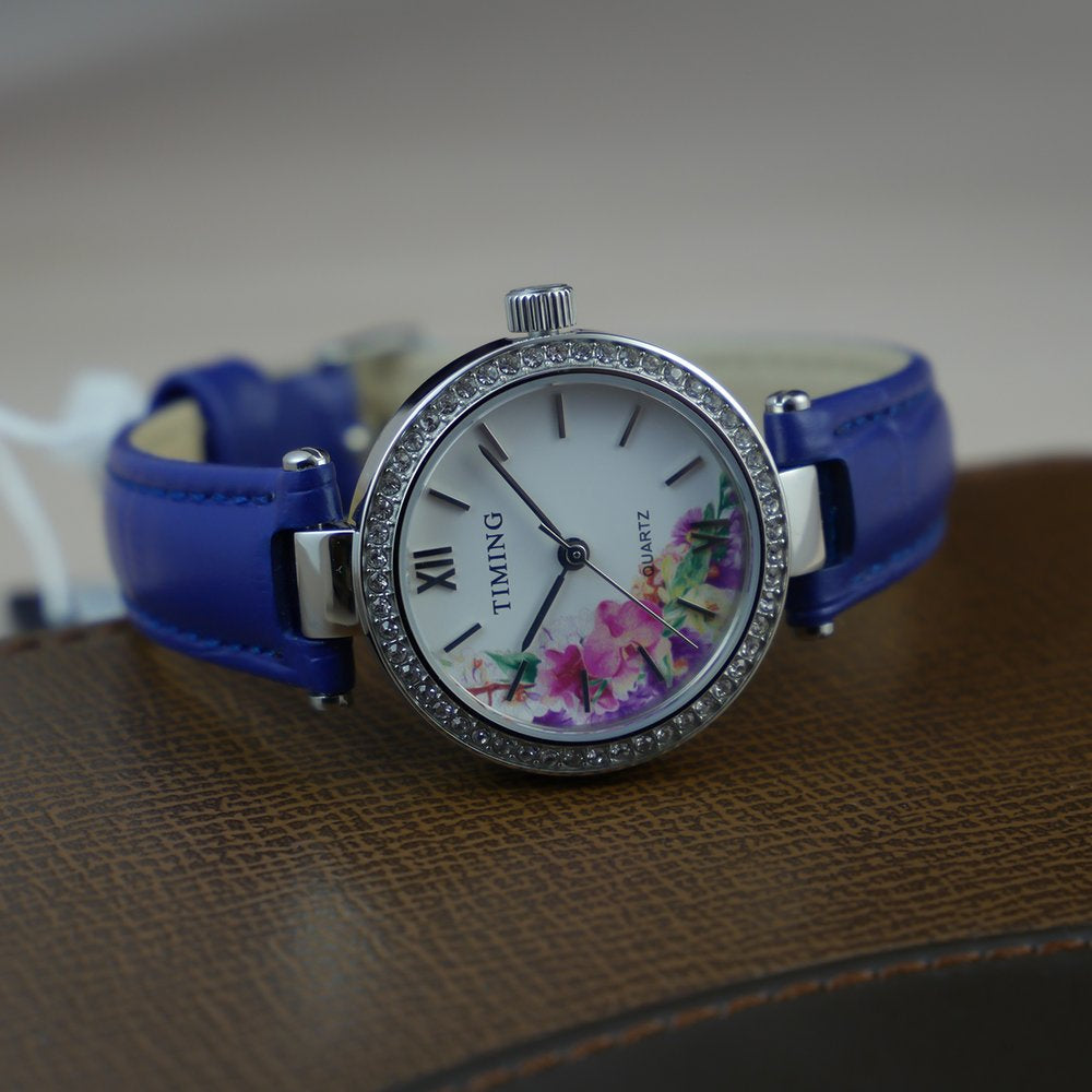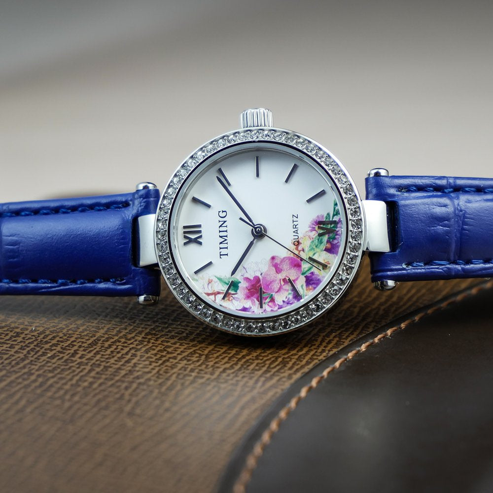 The TIMING Women's Quartz Watch combines elegance with everyday functionality. The silver-tone stainless steel case and blue leather strap offer a stylish look, while the floral-patterned dial enhances its charm. With quartz precision and scratch-resistant mineral glass, this watch is both reliable and sophisticated. Ideal for daily wear or as a thoughtful gift, this timepiece will elevate your style. |